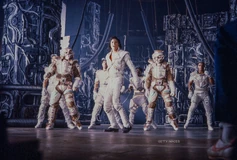 The two robot crew members transform into musical instruments, and the crew members begin to play the various instruments. As Hooter runs toward his instrument, he trips over EO's cape and breaks it, stopping the music. The spell broken, the Supreme Leader orders her guards to capture Captain EO and his crew.